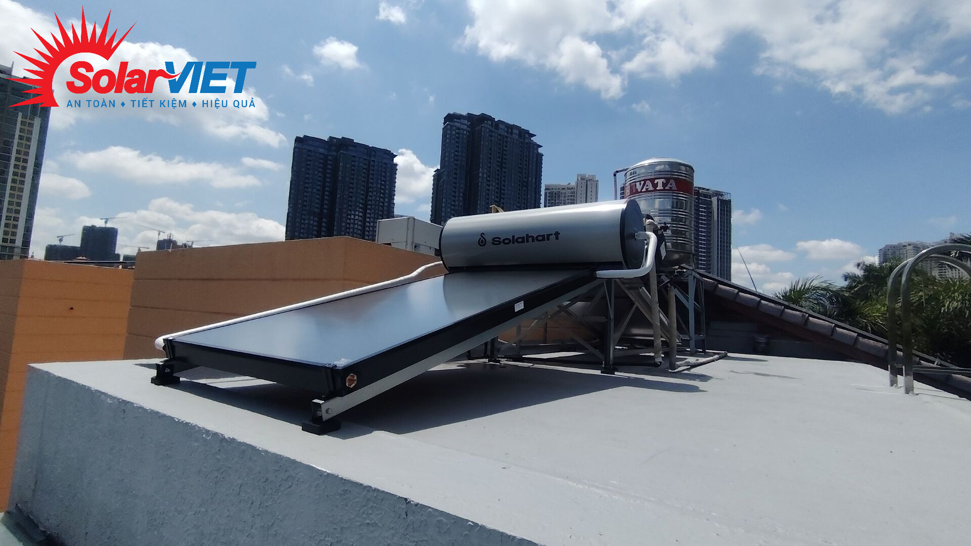 LẮP ĐẶT MÁY NƯỚC NÓNG NĂNG LƯỢNG MẶT TRỜI SOLAHART 150 LÍT TẠI QUẬN 2