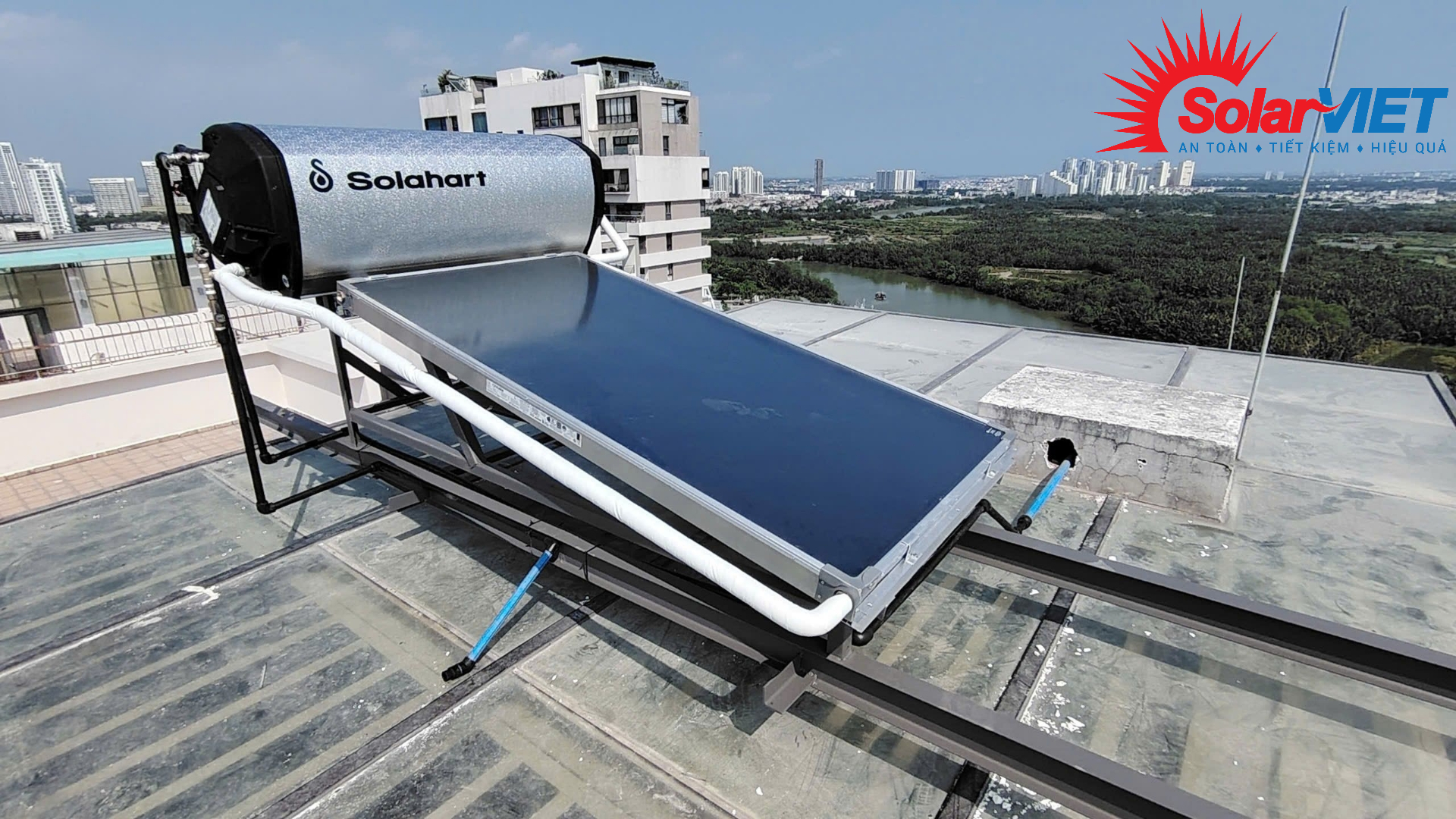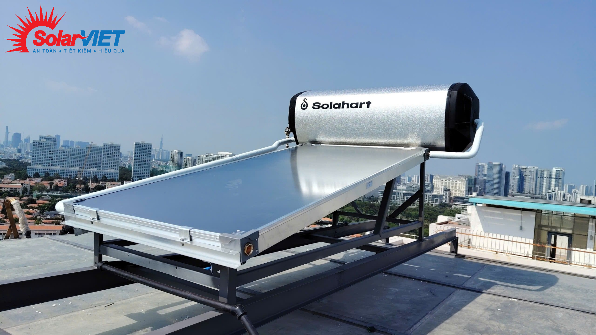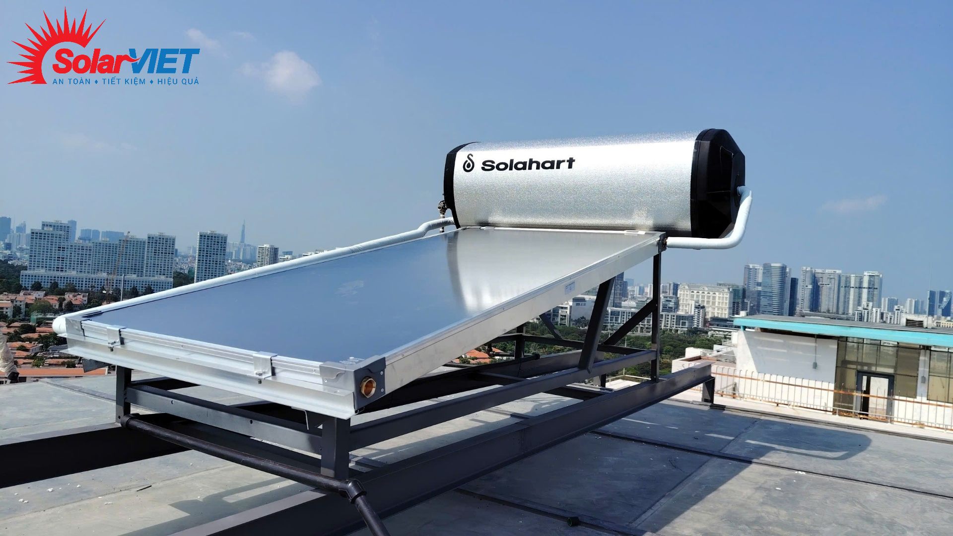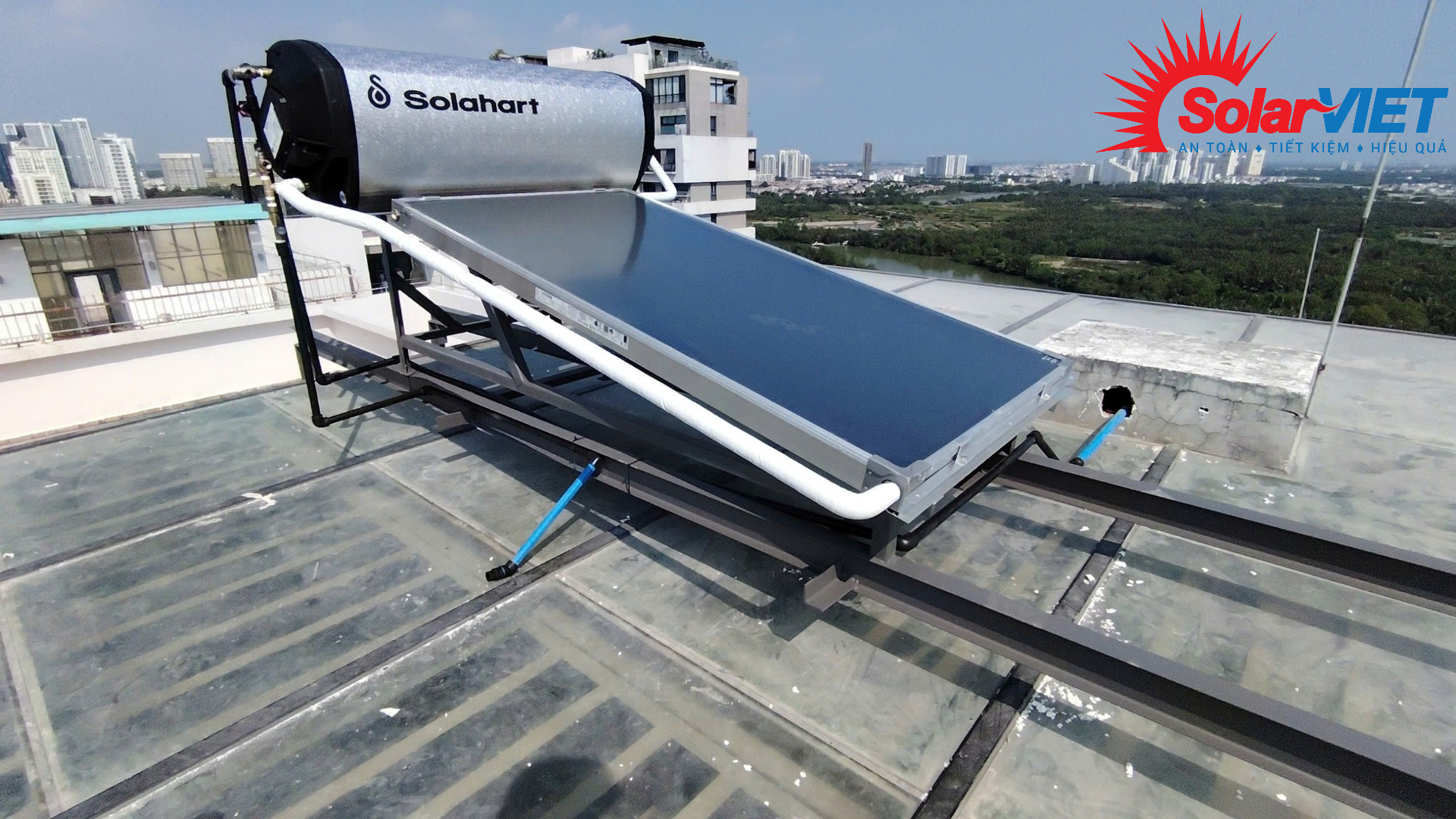Chỉ cần quý khách chủ động gia cố một khung chân sắt vững chắc trên mái kính (hoặc để chúng tôi tư vấn), phần còn lại hãy để Solahart Premium 180L lo.